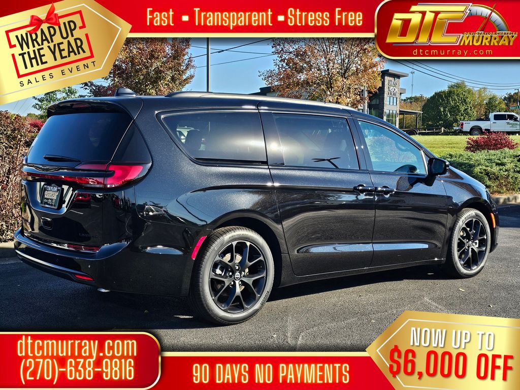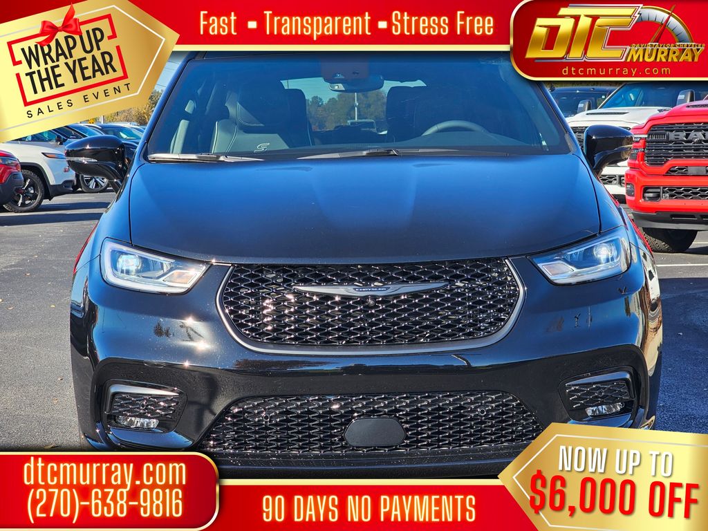 115V Auxiliary Power Outlet, AM/FM radio: SiriusXM 360L, Apple CarPlay/Android Auto, Heated front seats, Heated rear seats, Heated steering wheel, Nappa Leather Bucket Seats, Navigation System, ParkView Rear Back-Up Camera, Power Liftgate, Power moonroof, Remote keyless entry, S Appearance Package, Ventilated front seats, 13 Speakers, 18" x 7.5" Painted Aluminum Wheels, 3-Channel Video Remote Control, 3.25 Axle Ratio, 360 Surround View Camera System, 3rd row seats: split-bench, 4-Wheel Disc Brakes, 760 Watt Amplifier, ABS brakes, Air Conditioning, Alloy wheels, Anodized Ink Badging, Audio memory, Auto-dimming Rear-View mirror, Automatic temperature control, Black Day Light Opening Moldings, Black Seats, Black Stow 'N Place Roof Rack, Blu-Ray/DVD Player/USB Port, Brake assist, Bumpers: body-color, Compass, Delay-off headlights, Driver door bin, Driver vanity mirror, Driver's Seat Mounted Armrest, Dual front impact airbags, Dual front side impact airbags, Electronic Stability Control, Emergency communication system: Chrysler Connect, FamCAM Interior Camera, Four wheel independent suspension, Front anti-roll bar, Front Bucket Seats, Front dual zone A/C, Front fog lights, Front reading lights, Fully automatic headlights, Garage door transmitter, Gloss Black Exterior Mirrors, Hands Free Sliding Doors, Heated door mirrors, High Definition Multimedia Interface, Illuminated entry, Integrated Active Noise Cancellation, Knee airbag, Low tire pressure warning, Memory seat, MyFlexCare Service Plan, Occupant sensing airbag, Outside temperature display, Overhead airbag, Overhead console, Panic alarm, Passenger door bin, Passenger seat mounted armrest, Passenger vanity mirror, Power door mirrors, Power driver seat, Power passenger seat, Power steering, Power windows, Premium Rear Fascia Black, Quick Order Package 27P, Radio data system, Rain sensing wipers, Rear air conditioning, Rear reading lights, Rear window defroster, Rear window wiper, Reclining 3rd row seat, Roof rack, S Badge, Safety Sphere, Seatback Video Screens, Security system, Speed control, Split folding rear seat, Spoiler, Steering wheel mounted audio controls, Stow N Vac Integrated Vacuum, Tachometer, Telescoping steering wheel, Tilt steering wheel, Touring Suspension, Traction control, Trip computer, Turn signal indicator mirrors, Uconnect Theater Family Group, Variably intermittent wipers, Video USB Port, Voltmeter, Wheels: 20" x 7.5" S-Model Aluminum Design 1, 115V Auxiliary Power Outlet, AM/FM radio: SiriusXM 360L, Apple CarPlay/Android Auto, Heated front seats, Heated rear seats, Heated steering wheel, Nappa Leather Bucket Seats, Navigation System, ParkView Rear Back-Up Camera, Power Liftgate, Power moonroof, Remote keyless entry, S Appearance Package, Ventilated front seats. Price does not include Tax, Title, or License fees. Price may include Manufacturer Rebates and Incentives. Buyer must meet certain conditions to qualify when applicable. $2750 - 2026 National Retail Bonus Cash . Exp. 01/05/2026 $750 - 2026 National Bonus Cash . Exp. 01/05/2026