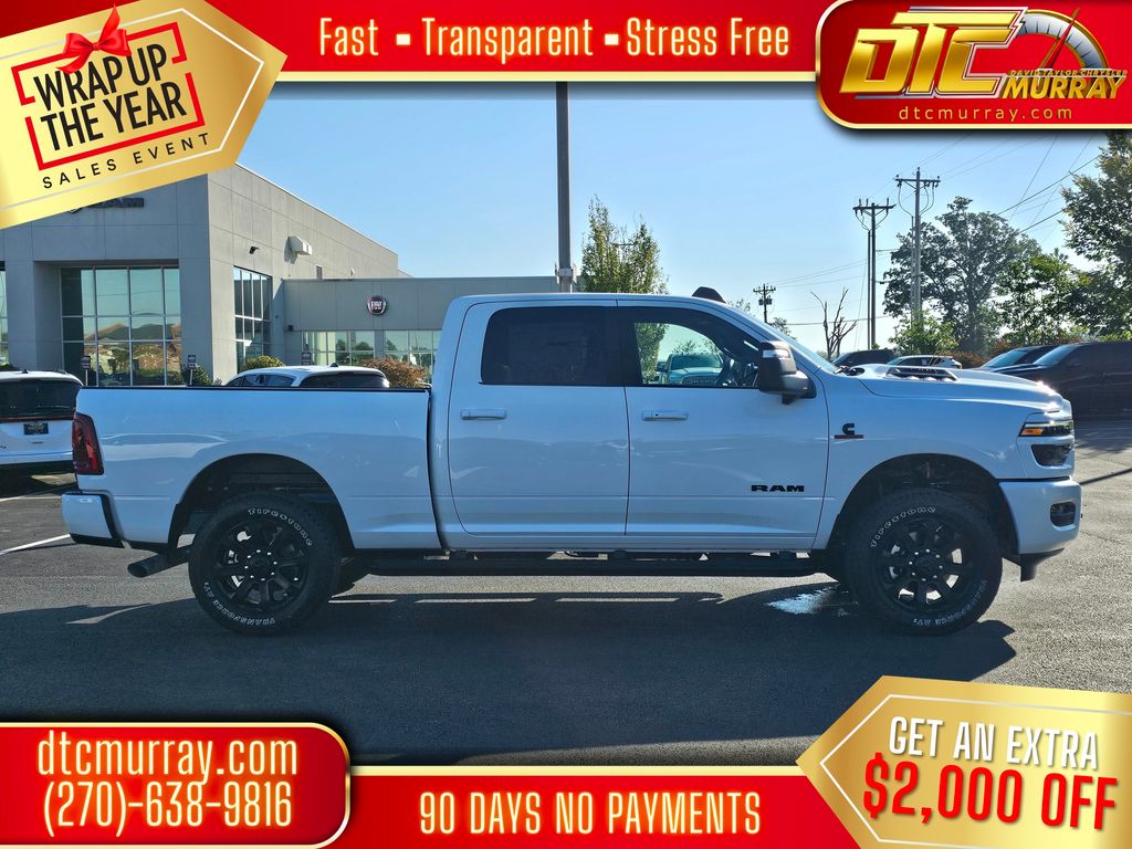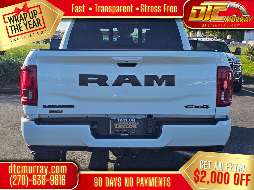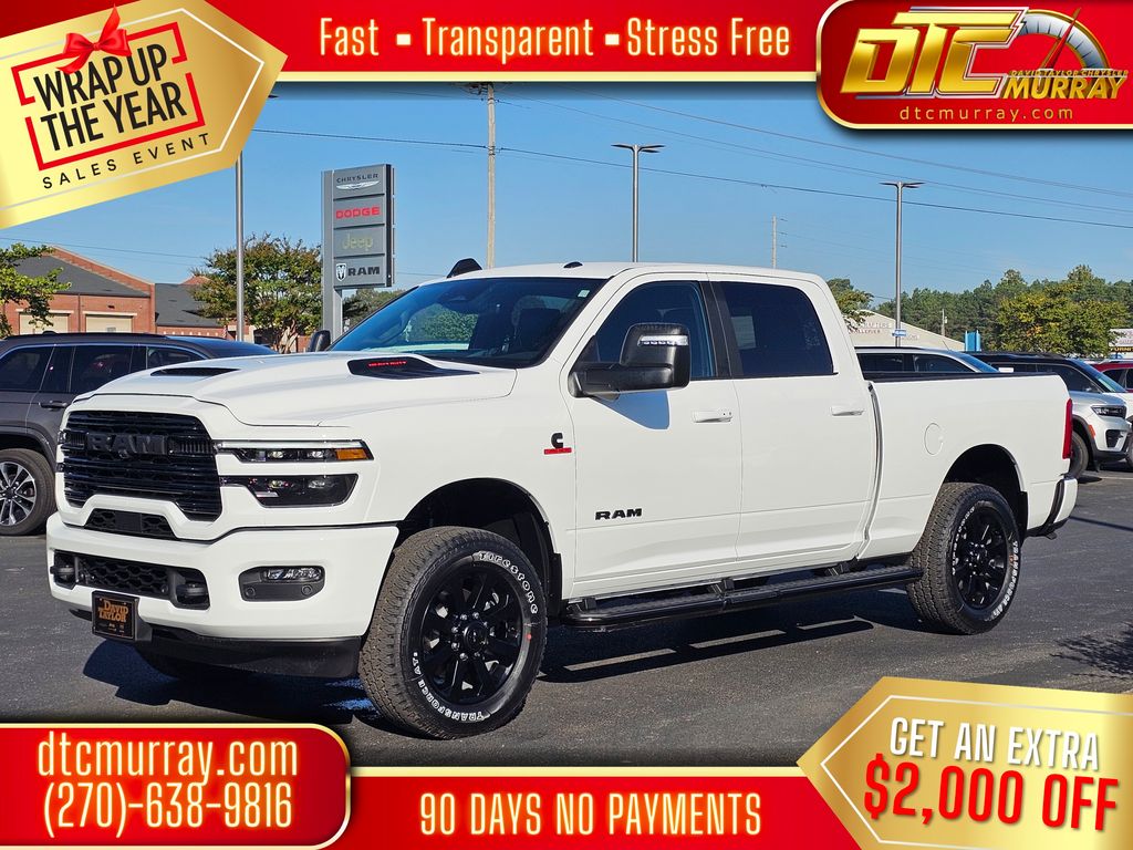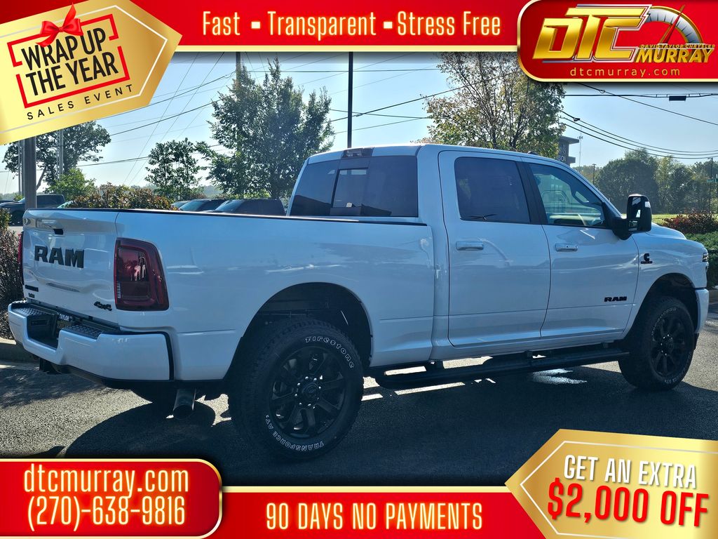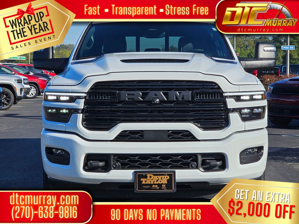 #1 Seat Foam Cushion, 10 Speakers, 115V Auxiliary Rear Power Outlet, 14.4" Touchscreen Display, 2 Way Rear Headrest Seat, 4 Way Front Headrests, 4-Wheel Disc Brakes, 4G LTE Wi-Fi Hot Spot, 5th Wheel/Gooseneck Towing Prep Group, ABS brakes, Active Lane Management System, Adaptive Steering System, Air Conditioning, Alloy wheels, AM/FM radio: SiriusXM with 360L, Anti-Spin Differential Rear Axle, Apple CarPlay, Apple CarPlay/Android Auto, Auto Dim Exterior Mirror, Auto High Beam Headlamp Control, Auto Level Rear Air Suspension, Auto Power-Folding Mirrors, Auto-Dimming Exterior Passenger Mirror, Auto-dimming Rear-View mirror, Automatic temperature control, Black Exterior Mirrors, Black Exterior Truck Badging, Black Wheel Center Hub, Body Color Grille-Surround, Brake assist, Bucket Seats, Bumpers: body-color, Chrome Exterior Mirrors, Compass, Connectivity - US/Canada, Delay-off headlights, Disassociated Touchscreen Display, Driver door bin, Driver vanity mirror, Drowsy Driver Detection, Dual front impact airbags, Dual front side impact airbags, Dual Wireless Charging Pad, Electronic Stability Control, Emergency Vehicle Alert System (EVAS), Exterior Mirrors Courtesy Lamps, Folding Flat Load Floor Storage, For Details, Visit DriveUconnect.com, For More Info, Call 800-643-2112, Front anti-roll bar, Front Center Armrest w/Storage, Front dual zone A/C, Front fog lights, Front License Plate Bracket, Front reading lights, Front Seat Back Map Pockets, Full Length Upgraded Floor Console, Fully automatic headlights, Garage door transmitter, Gloss Black Grille Billets/Accents, Google Android Auto, GPS Antenna Input, GPS Navigation, HD Radio, Heated door mirrors, Heated Front Seats, Heated front seats, Heated Steering Wheel, Heated steering wheel, High Back Seats, Illuminated entry, Laramie Level 2 Plus Equipment Group, Leather Trim 40/20/40 Bench Seat, Leather Trimmed Bucket Seats, LED Bed Lighting, Low tire pressure warning, Mirror Running Lights, MOPAR Deployable Bed Step, MyFlexCare Service Diesel, Navigation System, Night Edition, Occupant sensing airbag, Off-Road Info Pages, Outside temperature display, Overhead airbag, Overhead console, Painted Flat Wheel-to-Wheel Side Steps, Panic alarm, ParkView Rear Back-Up Camera, Passenger door bin, Passenger vanity mirror, Power 2-Way Driver Lumbar Adjust, Power 2-Way Passenger Lumbar Adjust, Power Adjust 8-Way Driver Seat, Power Adjust 8-Way Front Passenger Seat, Power Adjust Mirrors, Power Deployable Running Boards, Power door mirrors, Power driver seat, Power passenger seat, Power steering, Power Telescoping Mirrors, Power windows, Power-Adjustable Convex Aux Mirrors, Quick Order Package 24H Laramie, Radio data system, Radio/Driver Seat/Mirrors/Pedals Memory, Rain Sensitive Windshield Wipers, Rear 60/40 Folding Seat, Rear anti-roll bar, Rear reading lights, Rear seat center armrest, Rear step bumper, Rear window defroster, Remote keyless entry, Remote Tailgate Release, Security system, Selectable Tire Fill Alert, SiriusXM Radio Service, Speed control, Split folding rear seat, Sport Performance Hood, Steering wheel mounted audio controls, Surround View Camera System, Tachometer, Tilt steering wheel, Towing Technology Group, Traction control, Traffic Sign Recognition, Trailer Reverse Guidance, Trailer Tire Pressure Monitoring System, Trailer Tow Pages, Trip computer, Turn signal indicator mirrors, Variably intermittent wipers, Ventilated Front Seats, Voltmeter, Wheels: 20" x 8.0" Black Painted Aluminum. Price does not include Tax, Title, or License fees. Price may include Manufacturer Rebates and Incentives. Buyer must meet certain conditions to qualify when applicable. $1000 - 2026 National Bonus Cash . Exp. 01/05/2026