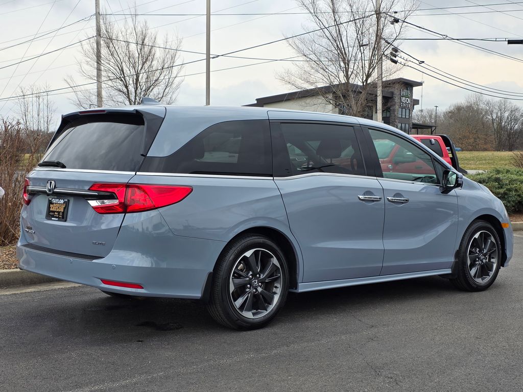 The striking exterior of the Odyssey Elite commands attention, with its sleek Gray finish and 19" Unique Machine-Finished Alloy wheels. The bold design is complemented by thoughtful features like the power liftgate, rain-sensing wipers, and auto high-beam headlights, ensuring your journeys are both stylish and convenient.